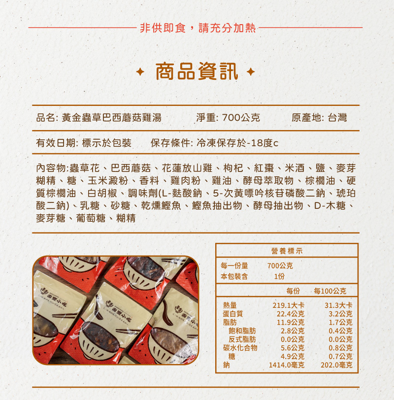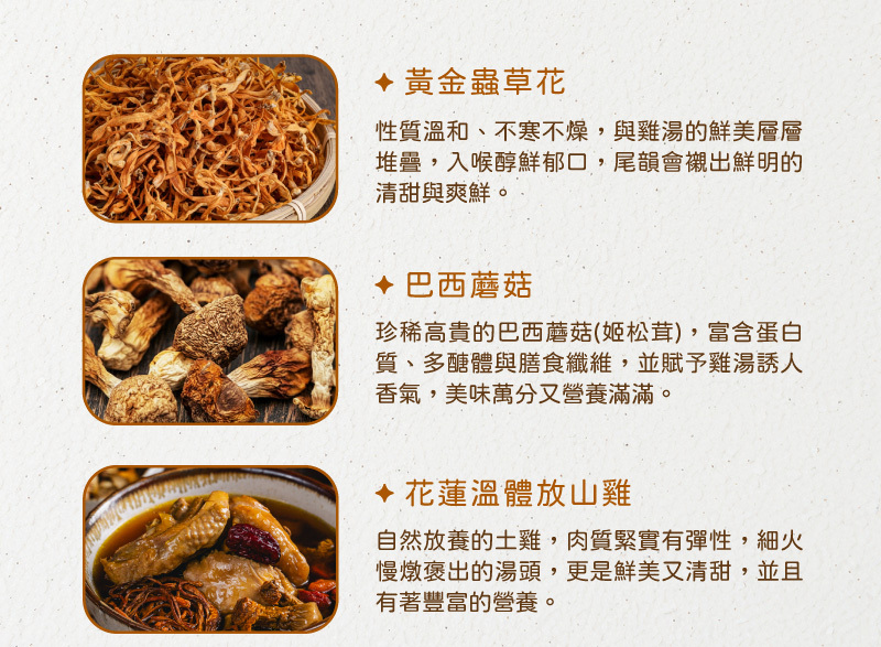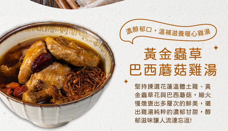 ‧ 加入黃金蟲草細火慢褒,滋味香醇、溫補又營養