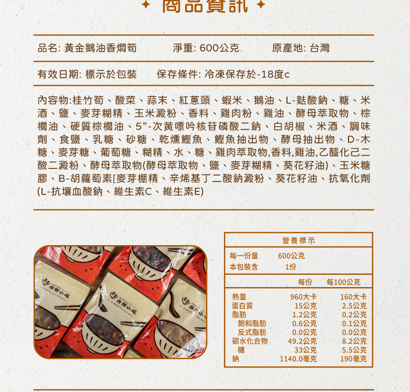 ‧ 600公克/包,約2-3人份