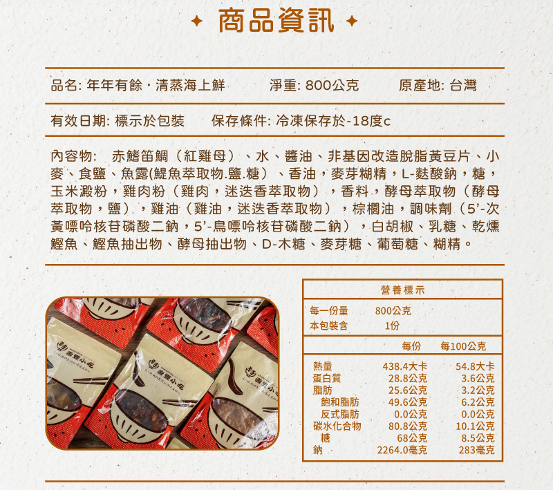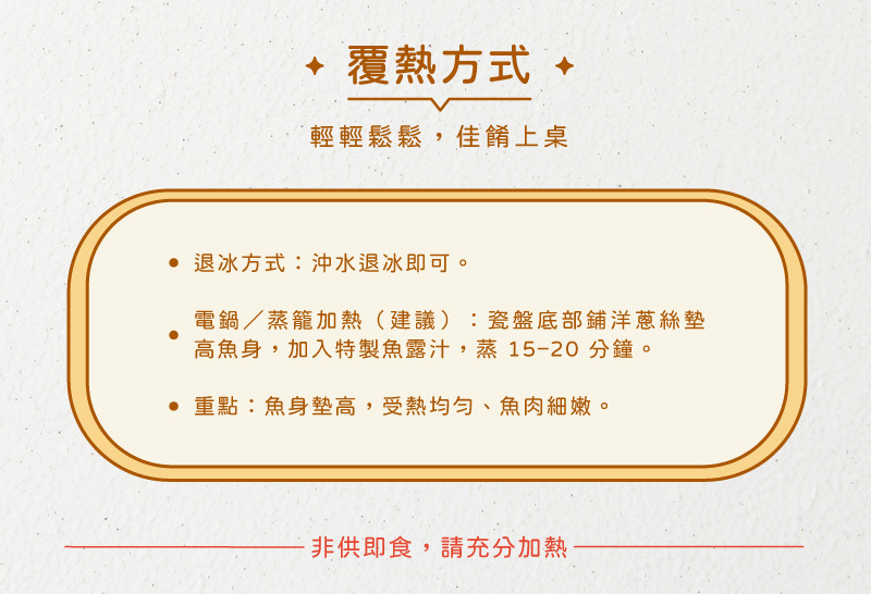 (本產品使用整尾魚料理,因每尾魚重量不同,成品內容略有差異,屬正常現象)
